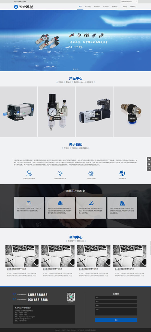 pbootcms五金器械自适应网站模板,pbootcms内核开发的一套企业网站模板,安装后和演示站一样,模板简洁大气,pbootcms内核自适应结构。兼容电脑、平板、手机等移动设备。