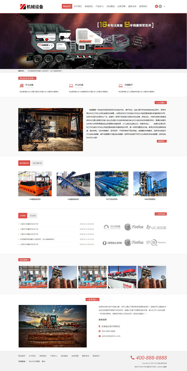 PbootCms机械五金设备自适应模板,pbootcms内核开发的一套企业网站模板,安装后和演示站一样,模板简洁大气,自适应结构。兼容电脑、平板、手机等移动设备。