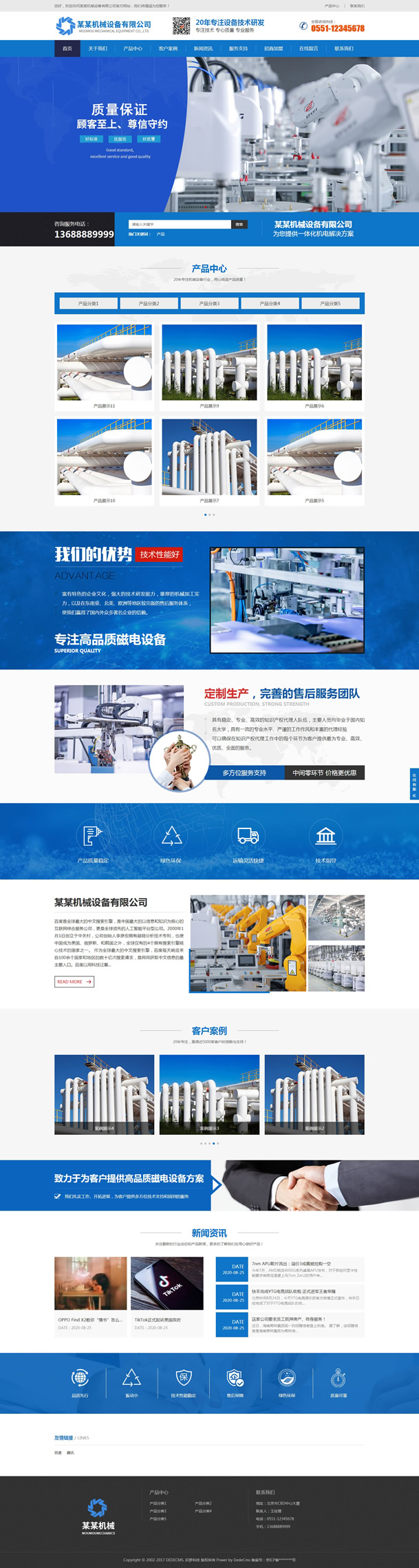 PbootCms蓝色机械设备网站HTML5自适应模板,pbootcms内核开发的一套企业网站模板,安装后和演示站一样,模板简洁大气,自适应结构。兼容电脑、平板、手机等移动设备。