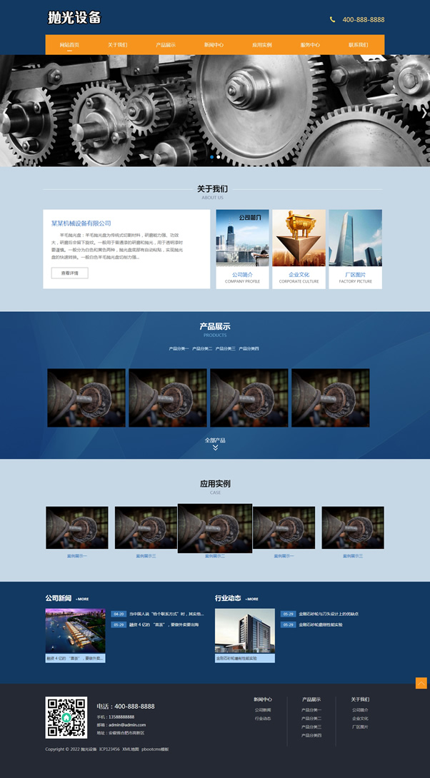 关键词:机械设备自适应模板源码 pbootcms 适应 大气 内核 安装 整洁