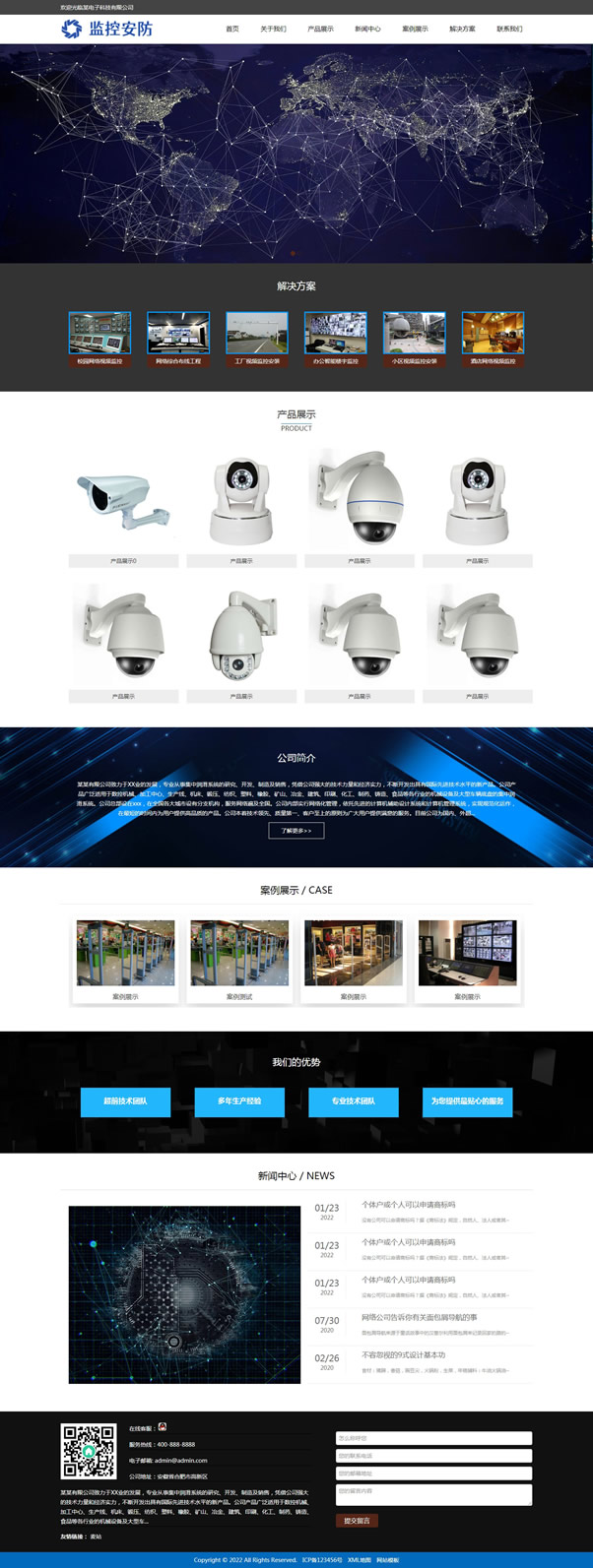 电子监控设备pbootcms网站模板,pbootcms内核开发的一套企业网站模板,安装后和演示站一样,模板简洁大气,pbootcms内核自适应结构。兼容电脑、平