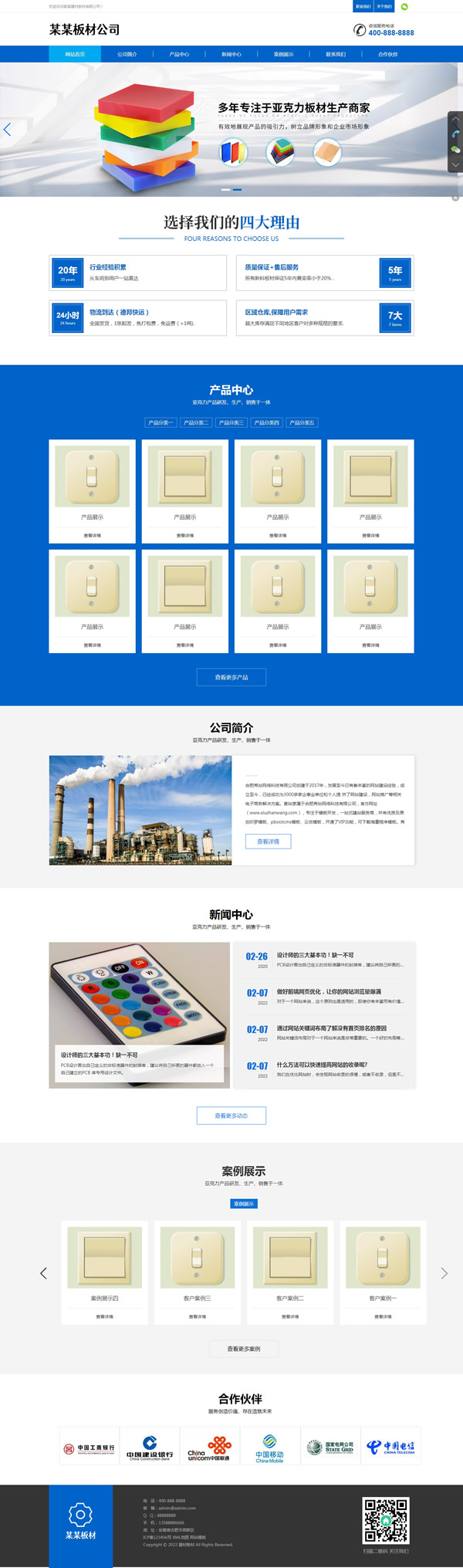 建材板材pbootcms自适应网站模板,pbootcms内核开发的一套企业网站模板,安装后和演示站一样,模板简洁大气,pbootcms内核自适应结构。兼容电脑、平板、手机等移动设备。