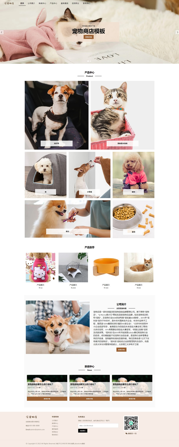 宠物门店pbootcms自适应网站模板,基于pbootcms内核UTF制作自适应结构,代码精简,适合SEO,装后即用。模板特点:1:自适应结构,代码已合理优化。