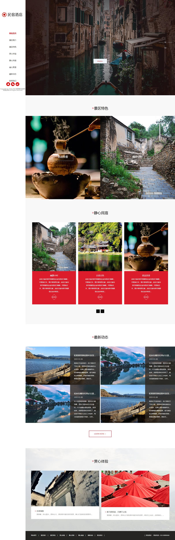 旅游风景区民俗酒店pbootcms模板,pbootcms内核开发的一套企业网站模板,安装后和演示站一样,模板简洁大气,自适应结构。兼容电脑、平板、手机等移动设备