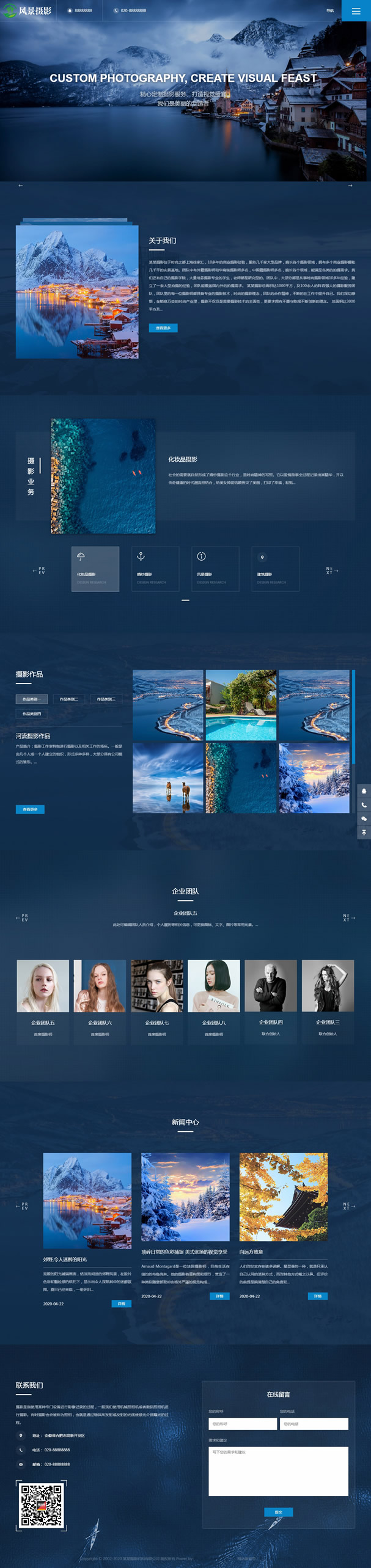 HTML5宽屏大气摄影相册网站pbootcms模板基于PBootCMS-UTF内核制作,适用于HTML5响应式、户外摄影、婚纱摄影设计类企业使用,一款适用性很强的模板。