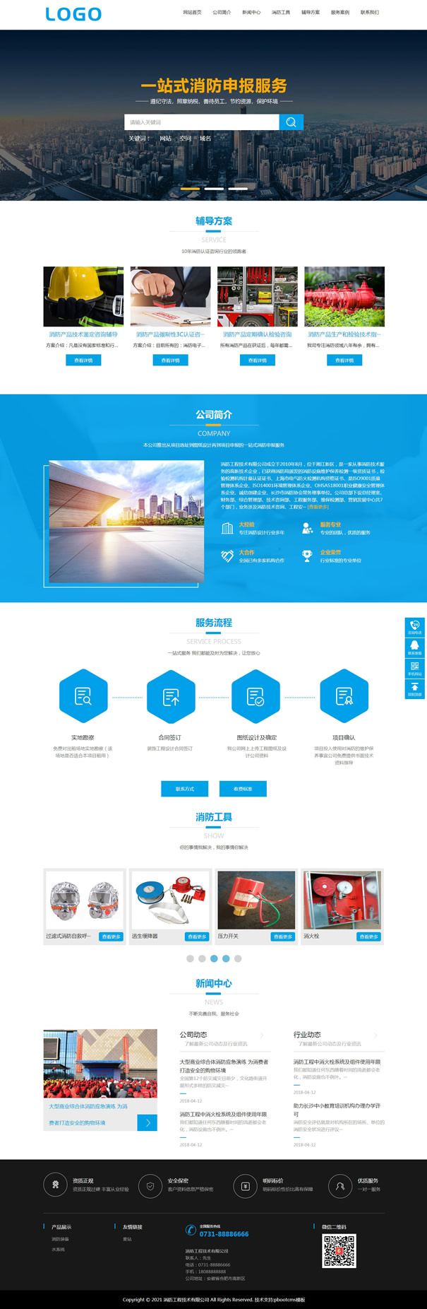 pbootcms消防工程(PC+WAP)网站模板,pbootcms内核开发的一套企业网站模板,安装后和演示站一样,模板简洁大气,PC+WAP结构。兼容电脑、平板