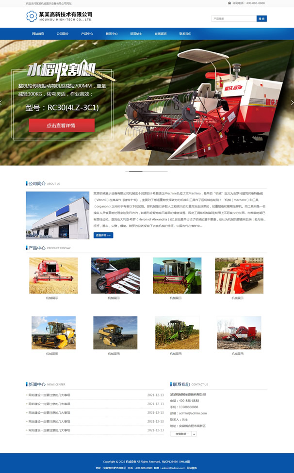 农业机械设备类网站pbootcms模板,pbootcms内核开发的一套企业网站模板,安装后和演示站一样,模板简洁大气,自适应结构。兼容电脑、平板、手机等移动设备