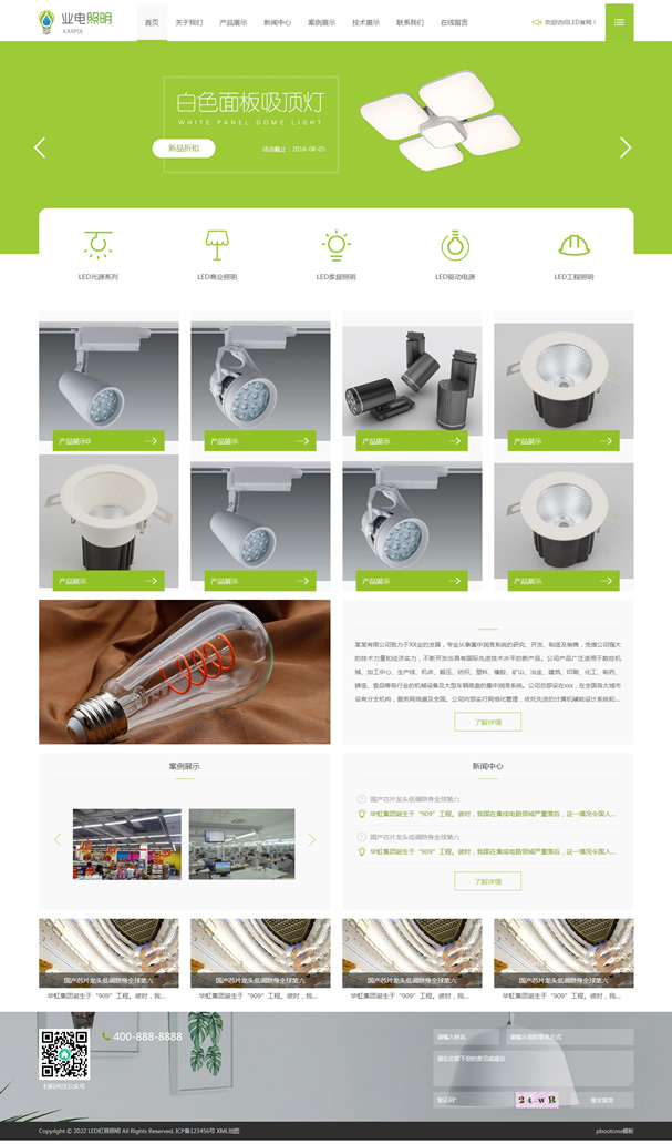 LED灯具照明pbootcms网站模板,pbootcms内核开发的一套企业网站模板,安装后和演示站一样,模板简洁大气,自适应结构。兼容电脑、平板、手机等移动设备