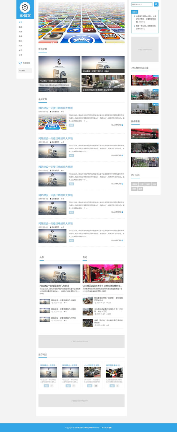关键词:响应式个人博客自媒体自适应网站模板 pbootcms 适应 大气 内核 安装 网站
