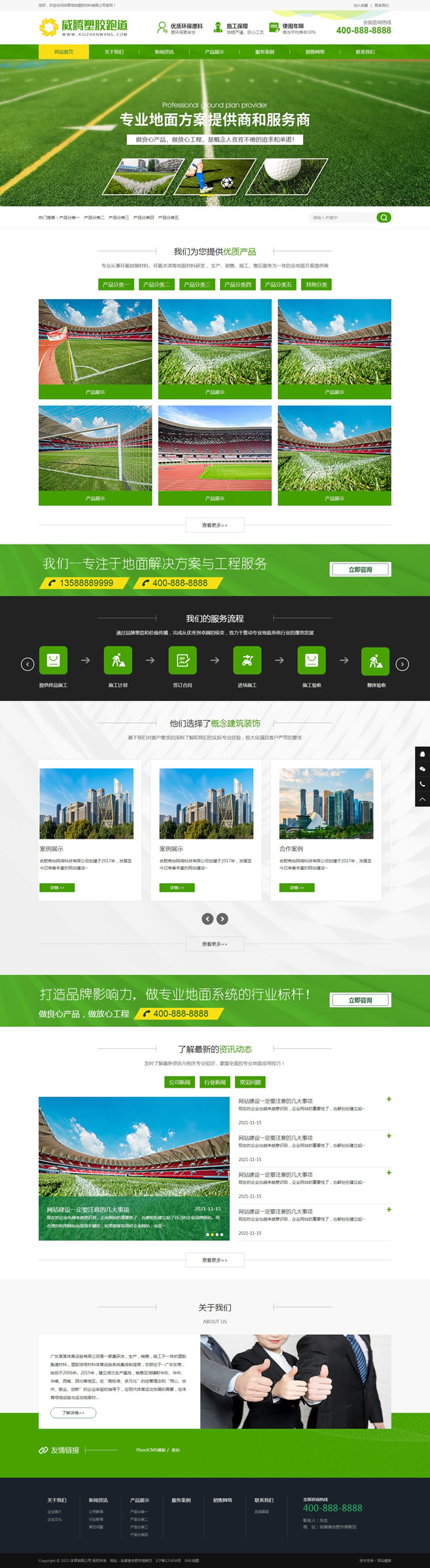 体育场地塑胶材料类网站织梦模板营销型网站模板,基于pbootcms内核UTF制作PC+WAP附带数据,代码精简,适合SEO,装后即用。