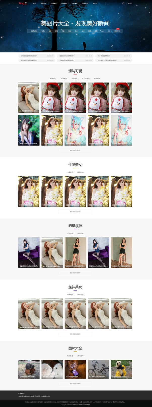 美女写真图片大全网站pbootcms模板,PC+WAP模板结构,附带数据,最新制作发布,一套源码适用于PC和移动设备,获取流量神器的美图图片网站源码。