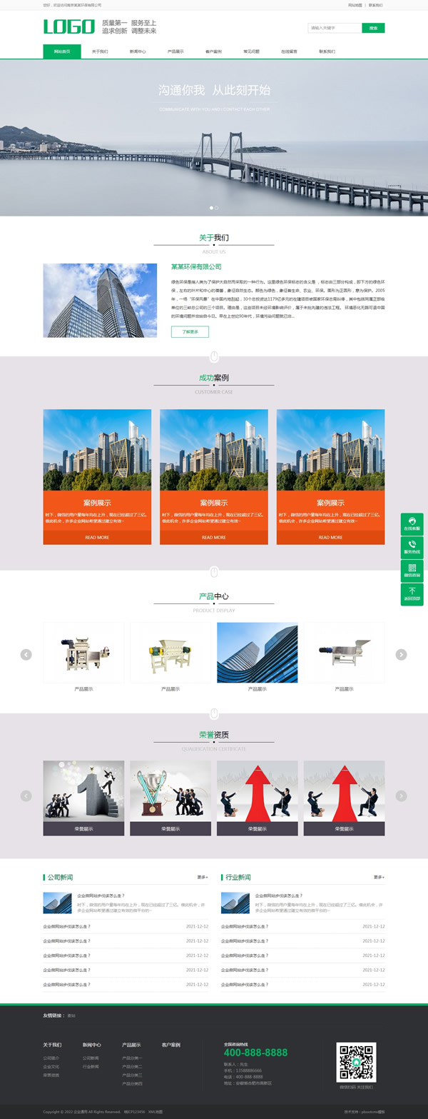 pbootcms绿色环保公司企业网站模板,pbootcms内核开发的一套企业网站模板,安装后和演示站一样,模板简洁大气,PC+WAP结构。兼容电脑、平板、手机等