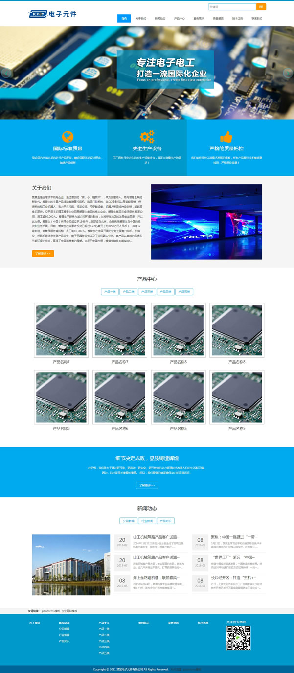 电子元件公司pbootcms网站模板源码下载,基于最新pbootcms3.0内核,自适应结构,利于SEO,独立SEO标题规范。
