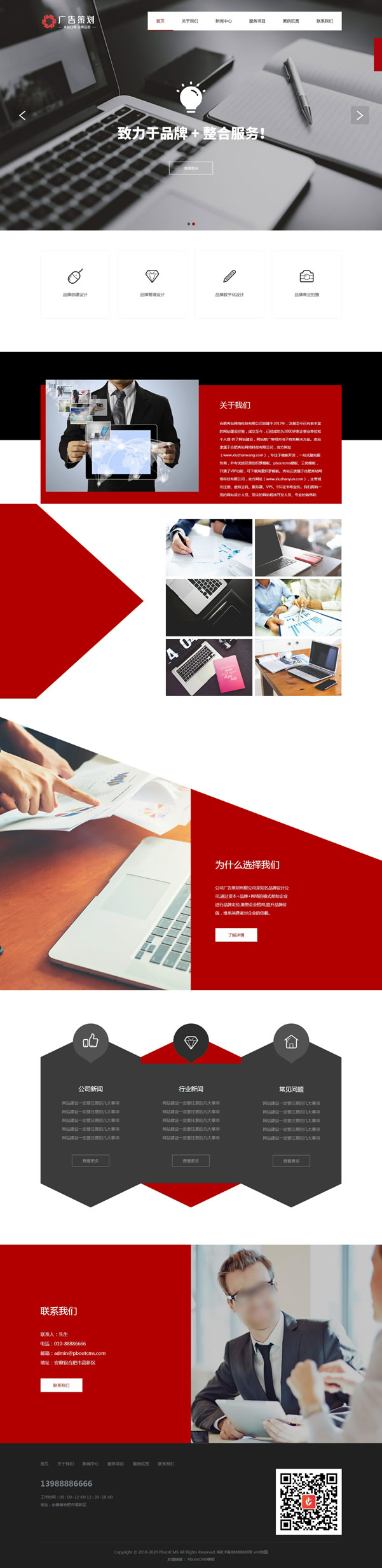品牌广告营销策划公司PbootCMS模板,本套模板整站自适应结构,利于用户体验及百度收录排名。安装后和演示站一样,整站源码安装简单。