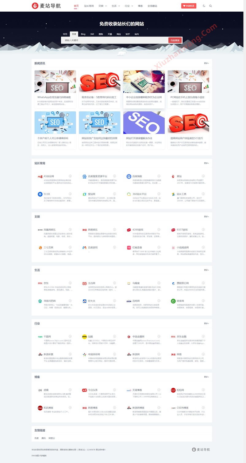 站长导航类pbootcms自适应网站模板,pbootcms内核开发的一套站长导航网站模板,安装后和演示站一样,模板简洁大气,pbootcms内核自适应结构。兼容