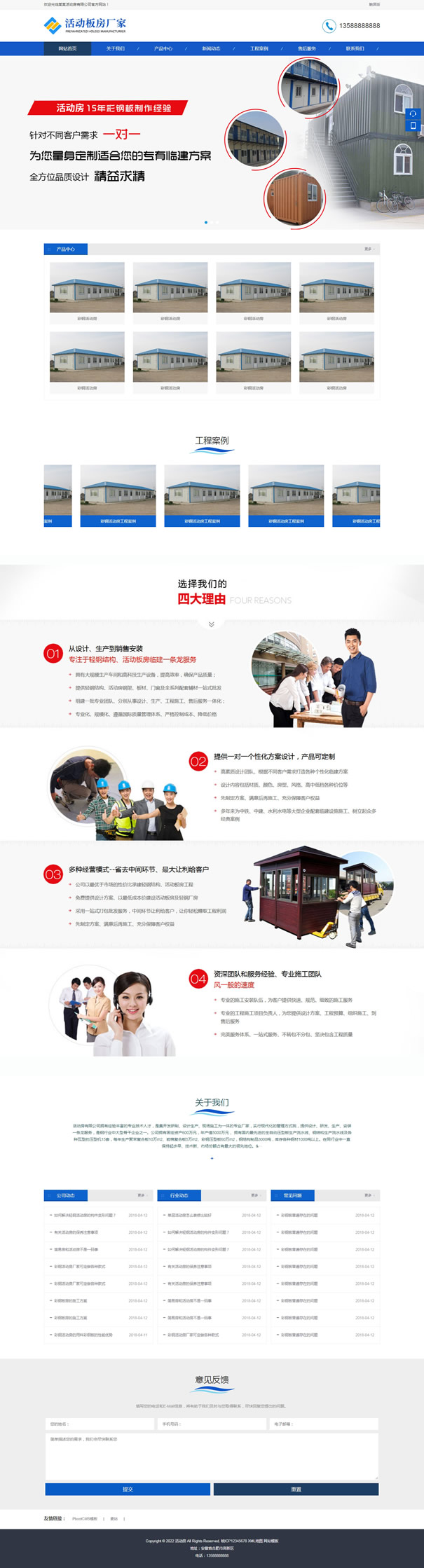 活动板房企业网站pbootcms模板,pbootcms内核开发的一套企业网站模板,安装后和演示站一样,模板简洁大气,PC+WAP结构。兼容电脑、平板、手机等移动