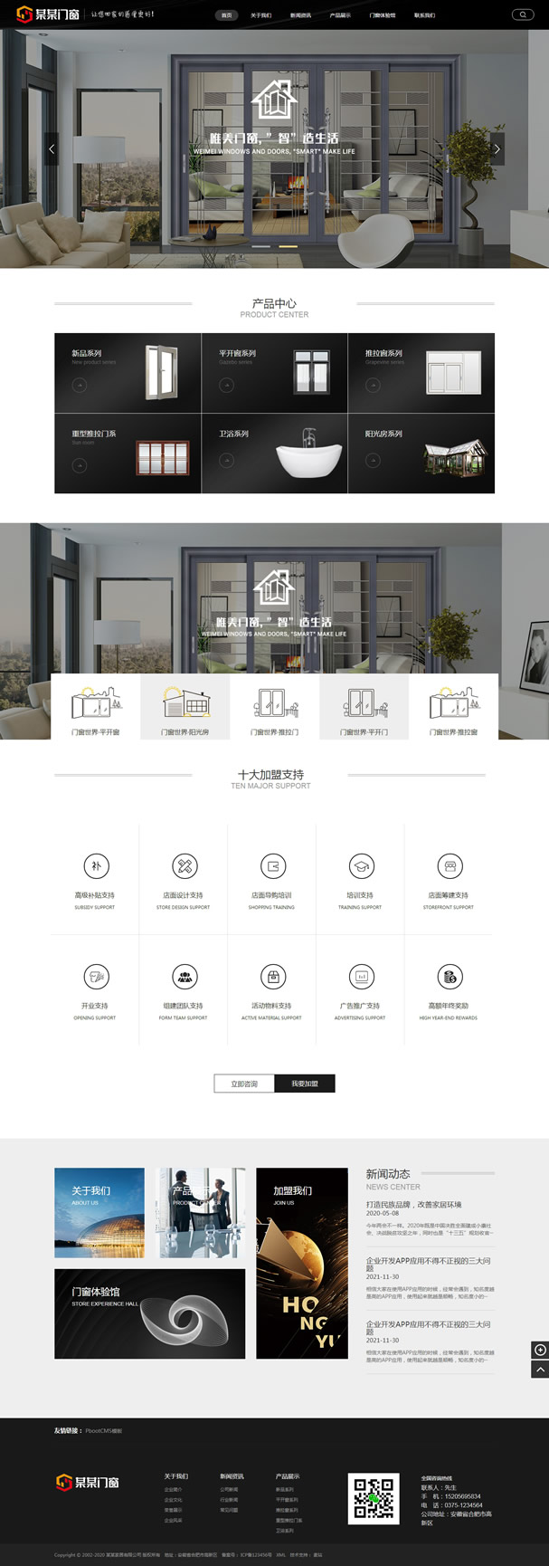 关键词:装饰门窗建材行业类网站源码 源码 PC+WAP 整站 pbootcms 安装 整洁