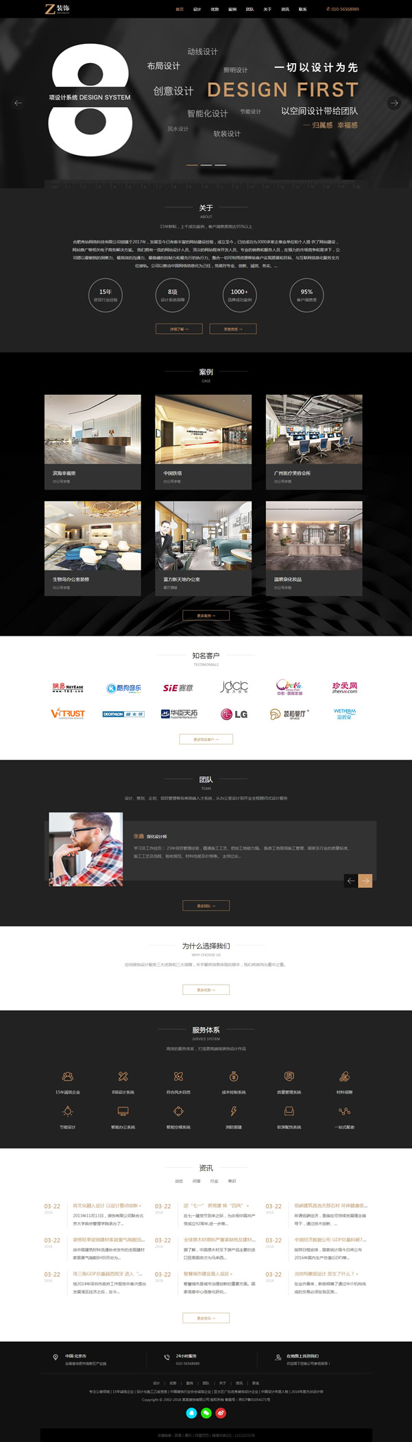 PbootCMS内核开发的HTML5黑色炫酷建筑装饰公司自适应模板,该模板适用于工程设计、装修设计、装饰公司类等企业; 响应式后台,数据即时同步,简单适用!附带